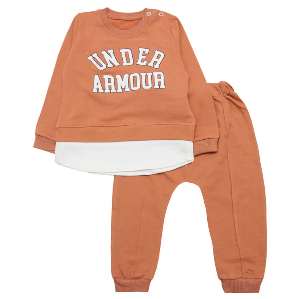 Більшість батьків знають, що дітлахам потрібна не тільки якісний і зручний одяг, а при цьому він повинен також бути сучасним і стильним. Якраз під такі параметри підходить нова моделька дитячого комплекту кофти і штанців. Вироби представленого комплекту пошиті з трикотажного полотна - двухнитки. Даний матеріал добре переносить прання і прасування, тому вироби будуть довго зберігати свій ідеальний первинний вигляд після численних прань. Біля горловини джемпера розташовані дві кнопочки. На штанцях є м'яка резиночка.