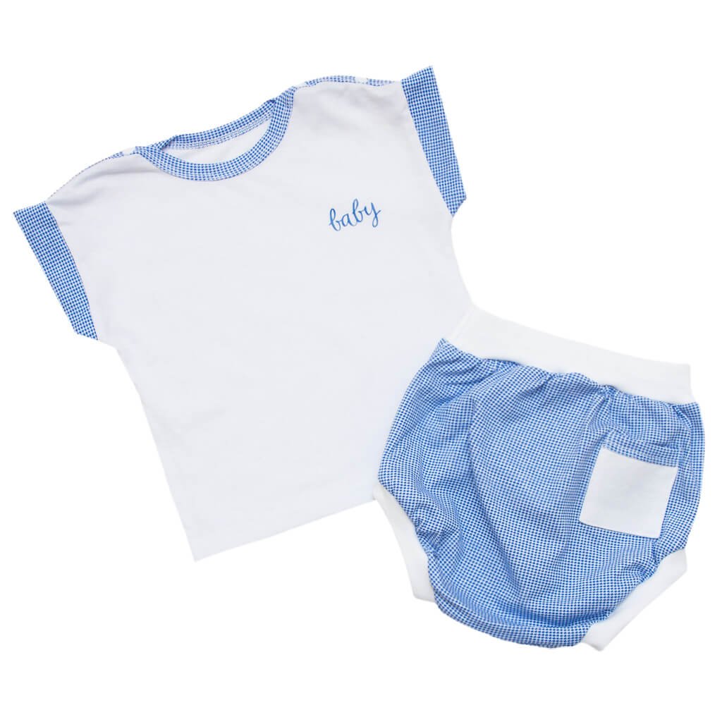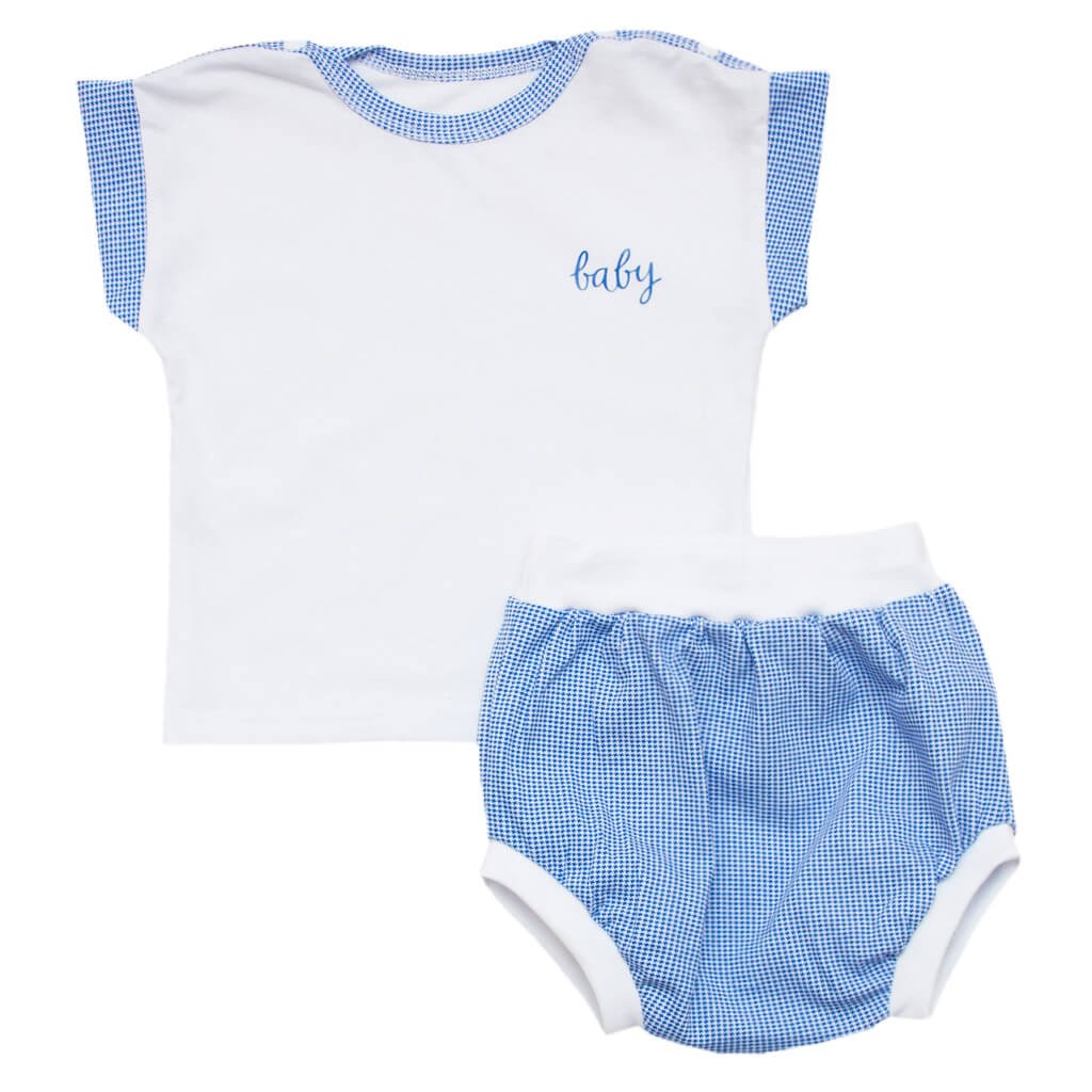Інтернет-магазин «Арлекин» продовжує поповнювати свій асортимент дитячого одягу неймовірними новинками для самих маленьких. Чудовий комплект для хлопчика складається з футболочки і трусів під памперси. Футболка і труси виготовлені з якісного куліра, який на 100% складається з бавовни. Також таке полотно неймовірно легке і приємне на дотик. На плічках футболки присутні кнопки, що дуже зручно при одяганні малюка. Трусики пошиті з полотна з візерунками. Даний комплект вигляди неймовірно мило і красиво.