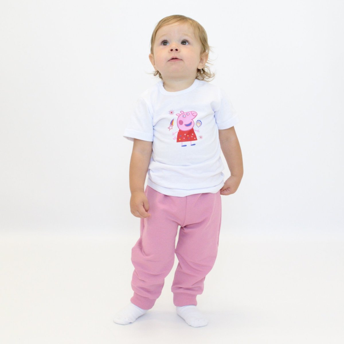 Кожен день малюка повинен бути сповнений комфорту та свободи рухів, і саме для цього створений цей комплект кольору пильної троянди з принтом пепи. М'яка кофта з двонитки із застібкою-блискавкою відмінно захищає від вітру і легко одягається, а еластичні манжети по краях утримують тепло та забезпечують зручну посадку. Штани з того ж полотна м'яко облягають ніжки, не сковуючи активних ігор. Легка біла футболка з куліра прекрасно підходить для повсякденного носіння і поєднується з іншими речами гардеробу. У наявності представлені кольори для дівчаток і хлопчиків, що робить набір універсальним і стильним.
