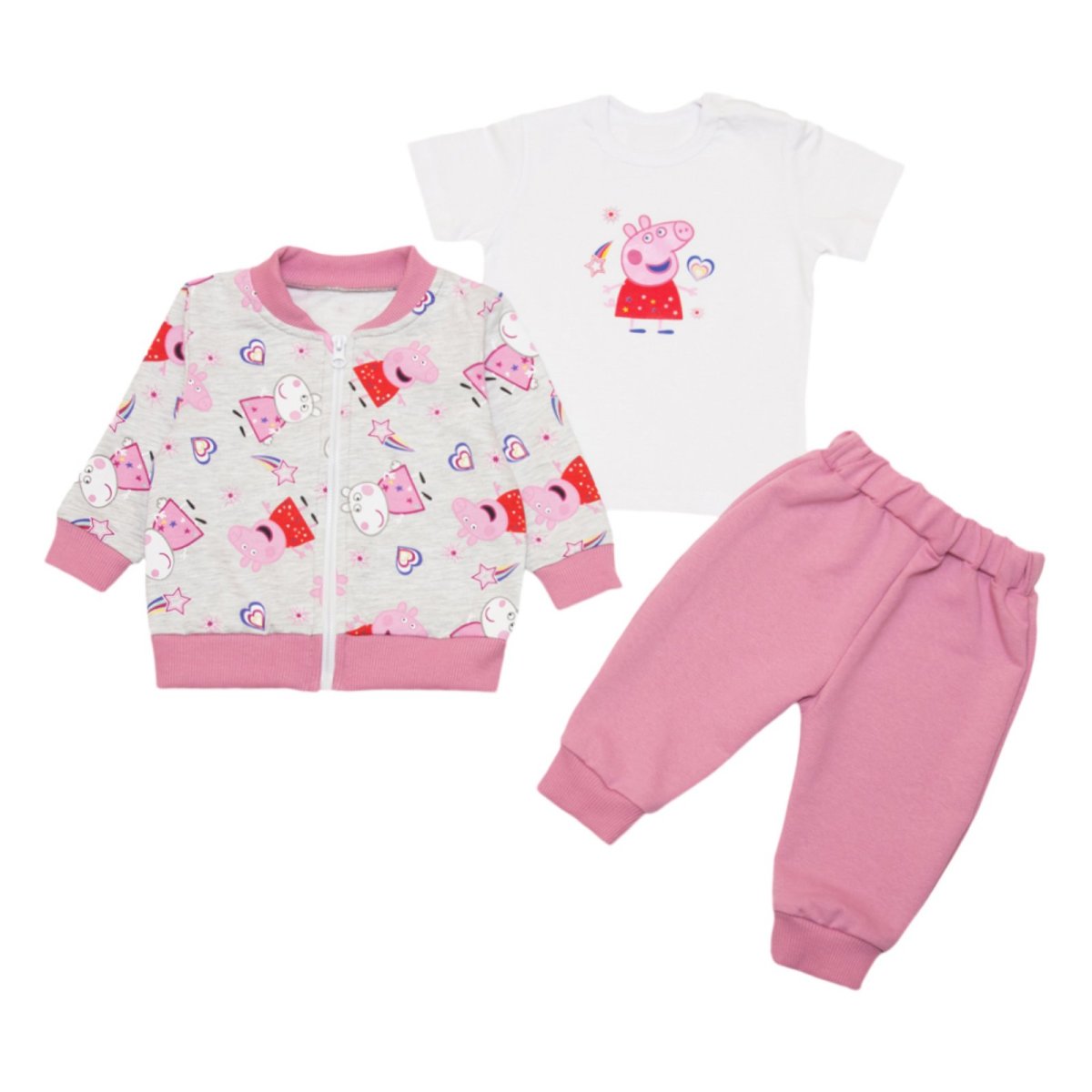 Костюм трійка для дівчинки двонитка 7254-363 Пильна троянда Пеппа