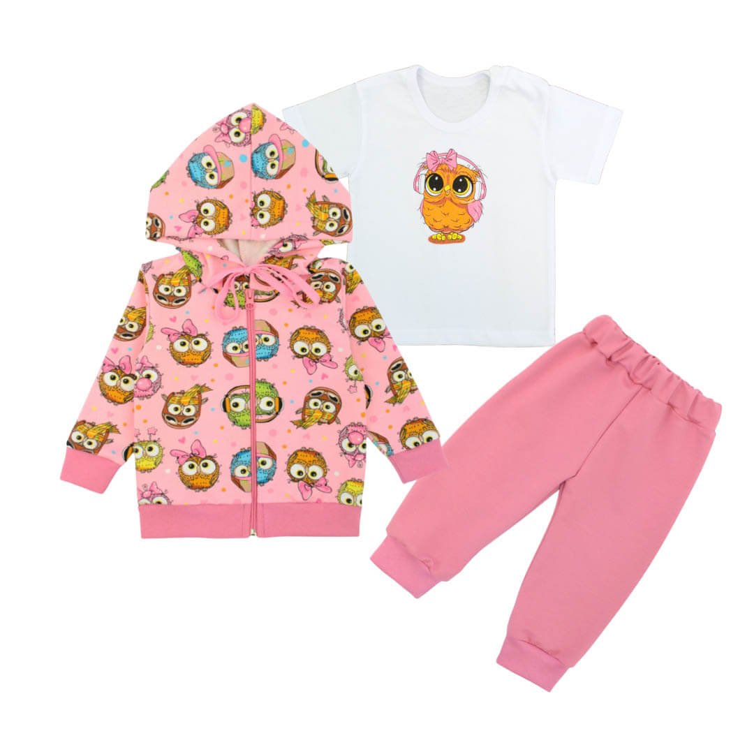 Костюм трійка для дівчинки двонитка 7253-363 Рожевий Сови