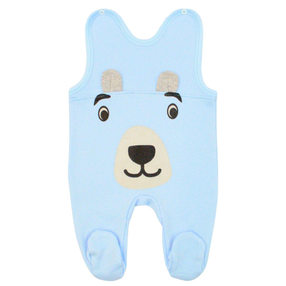 Пропонуємо Вам новинку ясельного асортименту. Яскраві, красиві і теплі повзуночки для маленького модника. Повзуни виготовлені з начісного полотна, що складається на 100% з бавовни блакитного кольору. Повзуни на вушках, застібаються на кнопочки зовні. Ніжки закриті, спереду є поличка. Прикрашає ці повзуночки фарбування у вигляді милої мордочки ведмедика, а також пришиті вушка. Повзуночки виглядають дуже красиво, а за рахунок теплого полотна, Вашому малюку буде комфортно і тепло. Приємних покупок і гарного настрою разом з ТМ "Арлекін".