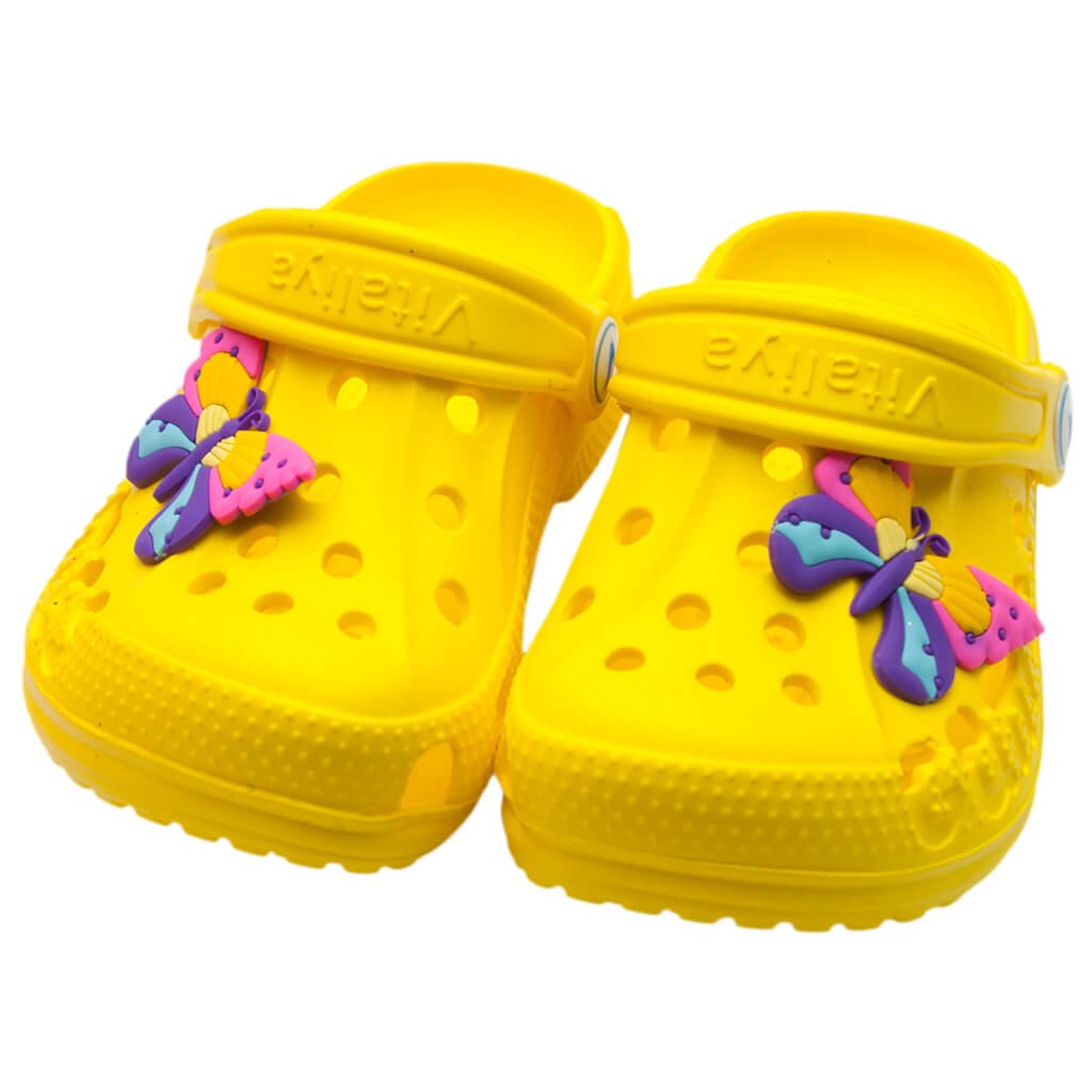 Шльопанці-крокси для дівчинки Модель 20210002 Жовті з метелеком
