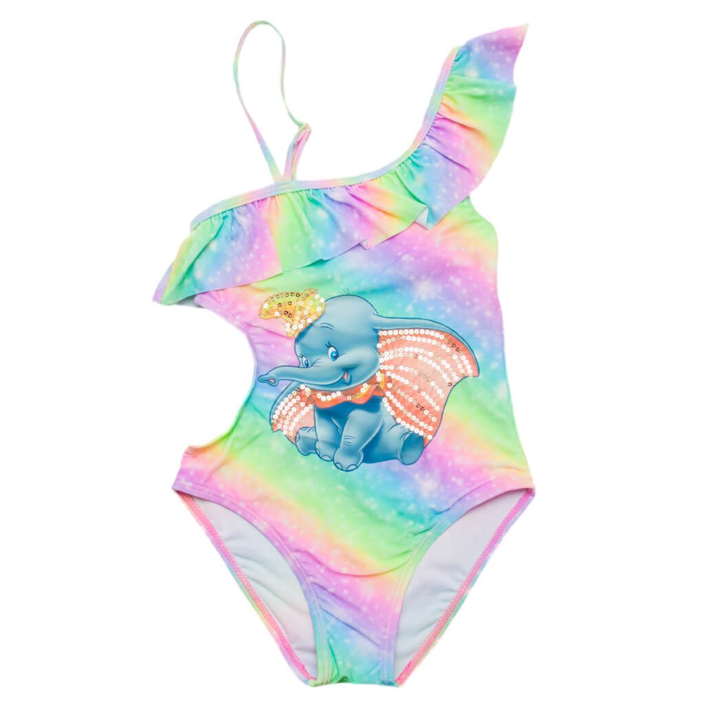 Ви тільки уявіть, як цей купальник буде виглядати на Вашій крихітці! Ми навіть не сумніваємося, що цей неймовірно стильний, красивий дизайн дитячого купальника підкорить серце маленької модниці. Здыльний радужний купальник для дівчинки - це чудовий варіант на літо. Спереду купальник прикрашений пайєтками, посередині розташований малюнок слоника, а тканина має принт для справжніх принцес - рожеві корони по всьому виробу. Купальник на одне плече, від якого по переду прошита рюша. На іншому плечі тонка бретелька, її можна відрегулювати до потрібного розміру. І ще однією стильною родзинкою даної моделі дитячого купальника є виріз збоку. Радимо поквапитися оформити замовлення, адже кількість дуже обмежена!
