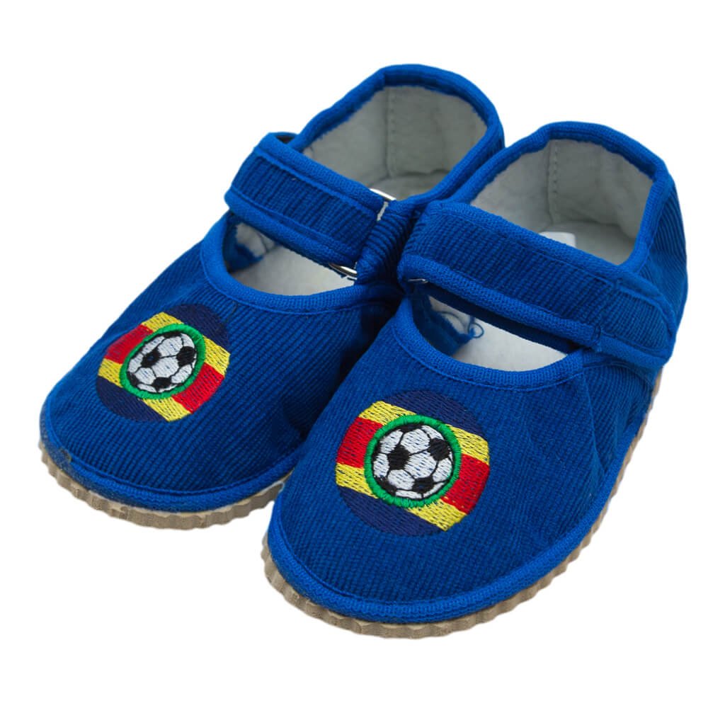 Закриті дитячі капці ідеальний варіант як для прогулянок, так і використання як змінне взуття. Дана модель легка і зручна. Підошва, гнучка і не слизька, спереду підошва так само злегка завищена, що забезпечує додатковий захист носка: як дитину - від травмування, так і самого взуття - від протирання. Капці для хлопчика з липучками, завдяки яким малюка можна привчати до самостійного перевзування. Взуття синього кольору з вишивкою кольорового м'яча. Завдяки закритій п'ятці і липучкам, ніжка малюка буде добре зафіксована, і йому буде комфортно.
