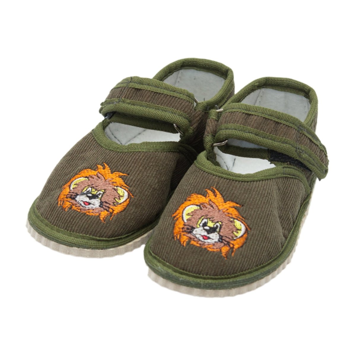 Закриті дитячі тапочки ідеальний варіант як для прогулянок, так і використання як змінне взуття. Дана модель легка і зручна. Підошва, гнучка і не слизька, спереду підошва так само злегка завищена, що забезпечує додатковий захист носка: як дитину - від травмування, так і самого взуття - від протирання. Тапочки для хлопчика з липучками, завдяки яким малюка можна привчати до самостійного перевзування. Взуття кольору хакі з вишивкою лева. Завдяки закритій п'ятці і липучкам, ніжка малюка буде добре зафіксована, і йому буде комфортно.