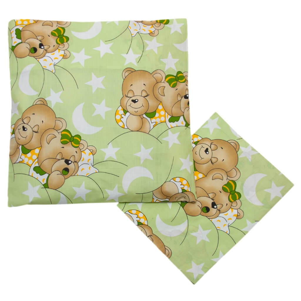 Дитяча постільна білизна є однією з найважливіших покупок, яка впливає на здоровий сон наших малюків. Саме цей постільний комплект пошитий з натуральної бавовняної тканини салатовго кольору з малюнками ведмедиків. Володіє гіпоалергенними властивостями, вбирає вологу і пропускає повітря, буде довго експлуатуватися, незважаючи на часті прання, так як матеріал дуже міцний. Важливо, то що білизна прошито білизняним швом, так само обробляються і краю ліжка. Так що за якість білизни ви можете бути абсолютно спокійні. У нашому інтрнет-магазині Арлекін великий асортимент кольорів. Так що ви точно знайдете відповідний дизайн!