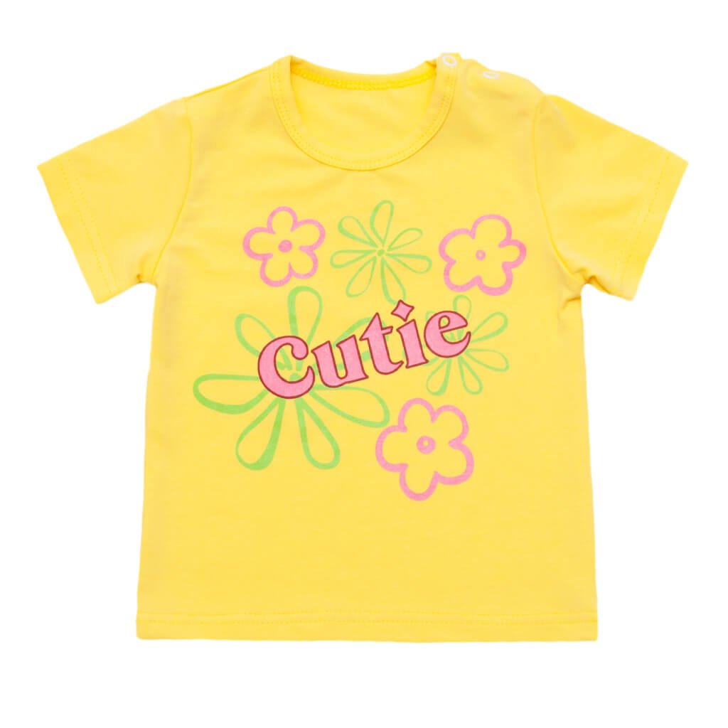 Вашій увазі пропонуємо однотонну жовту футболку для дівчинки з барвистим фарбуванням квіточок. Вона виглядає нарядно, і приємна до тіла, оскільки пошита з полотна стрейч-кулір. Воно дихає і вашому малюкові буде комфортно і зручно. Така дитяча футболка є базовою річчю, яку легко доповнять дитячі шортики, штанці або будь-який інший низ, який Ви можете придбати в нашому інтернет-магазині ТМ "Арлекин". Горловина оброблена бейкою і на плечику є дві кнопки. Влітку футболка це головний предмет гардеробу, їх необхідно мати декілька. Наш інтернет-магазин - пропонує широкий вибір для Вас!