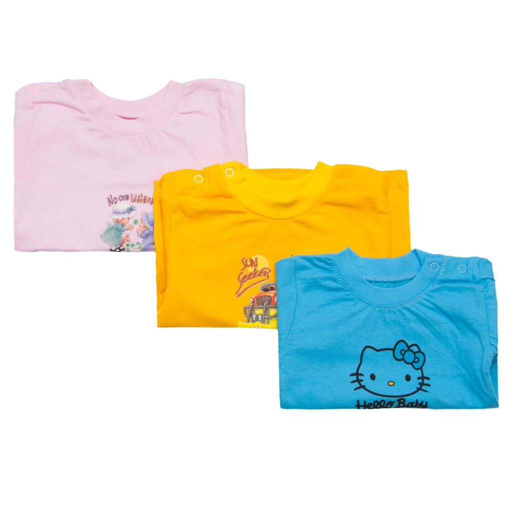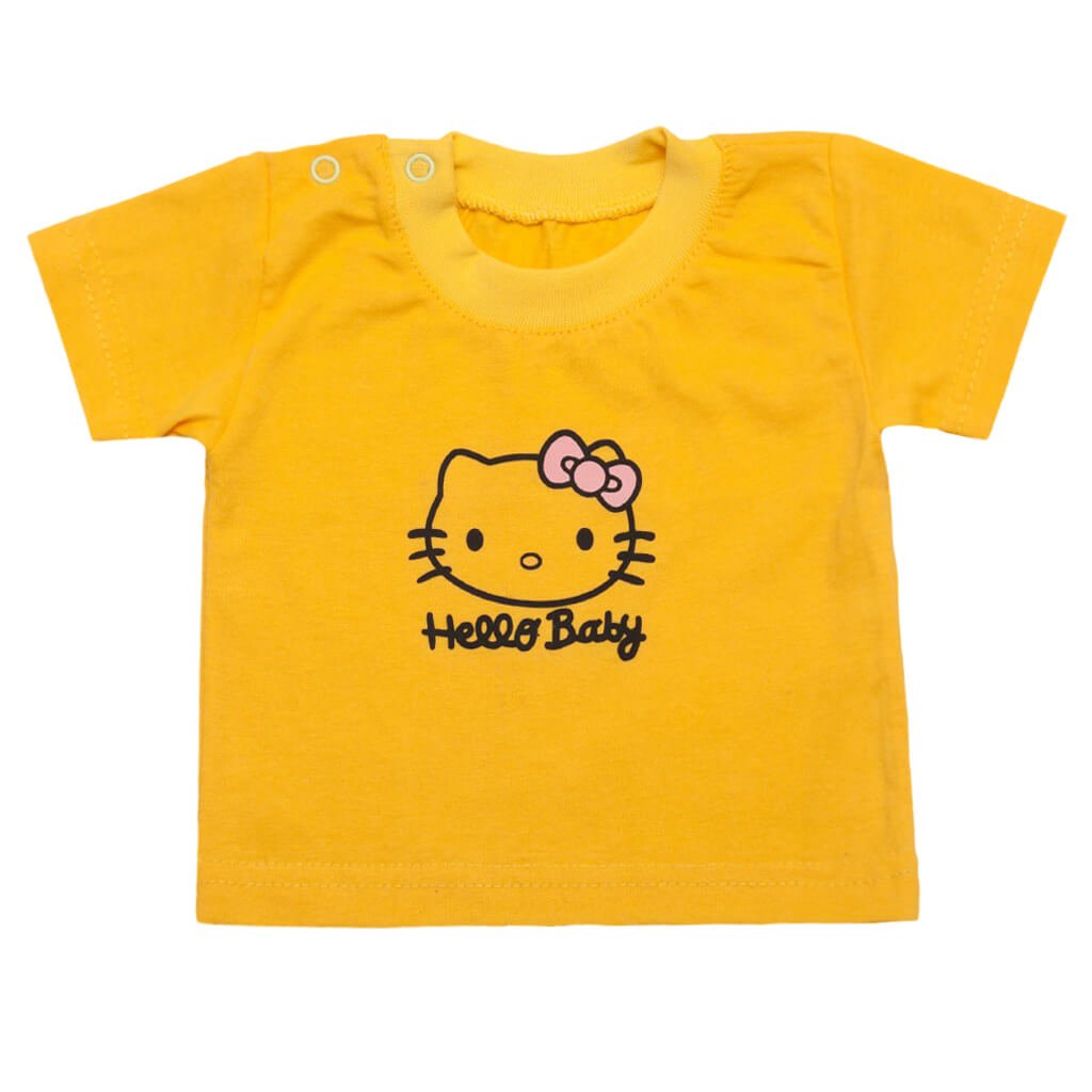 Дитяча футболочка виготовлена з якісного бавовняного полотна - куліра. Цей матеріал приємний і м'який на дотик, і тому часто використовується під час пошиття дитячого одягу. Горловина виробу оброблена еластичним манжетом, а на одному плечі присутні кнопочки. Однотонна футболочка прикрашена стильними малюнками на лицьовій стороні. Така дитяча футболочка ідеально підійде для повсякденного носіння. Футболка - це практичний і зручний елемент гардероба, який чудово поєднується з найрізноманітнішим одягом.