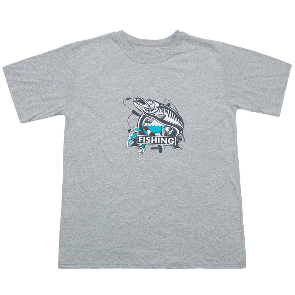 Інтернет-магазин торгової марки «Арлекин» готовий представити Вашій увазі нові моделі футболок для дорослих. Футболки – невід'ємна частина гардеробу абсолютно кожної людини. Дана чоловіча футболка пошита з трикотажного бавовняного матеріалу – куліра сірого кольору. Натуральне полотно гарантує максимальний комфорт та зручність при носінні. На лицьовій частині виробу є яскраве фарбування, яке обов'язково сподобається любителям рибальства. Таку футболку можна легко комбінувати з будь-якими шортами, штанами або джинсами.