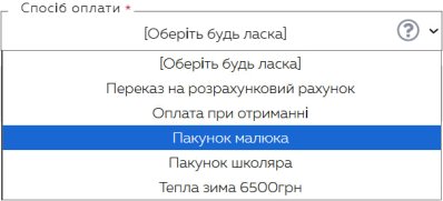 - при виборі способу оплати вказати потрібний спосіб оплати.