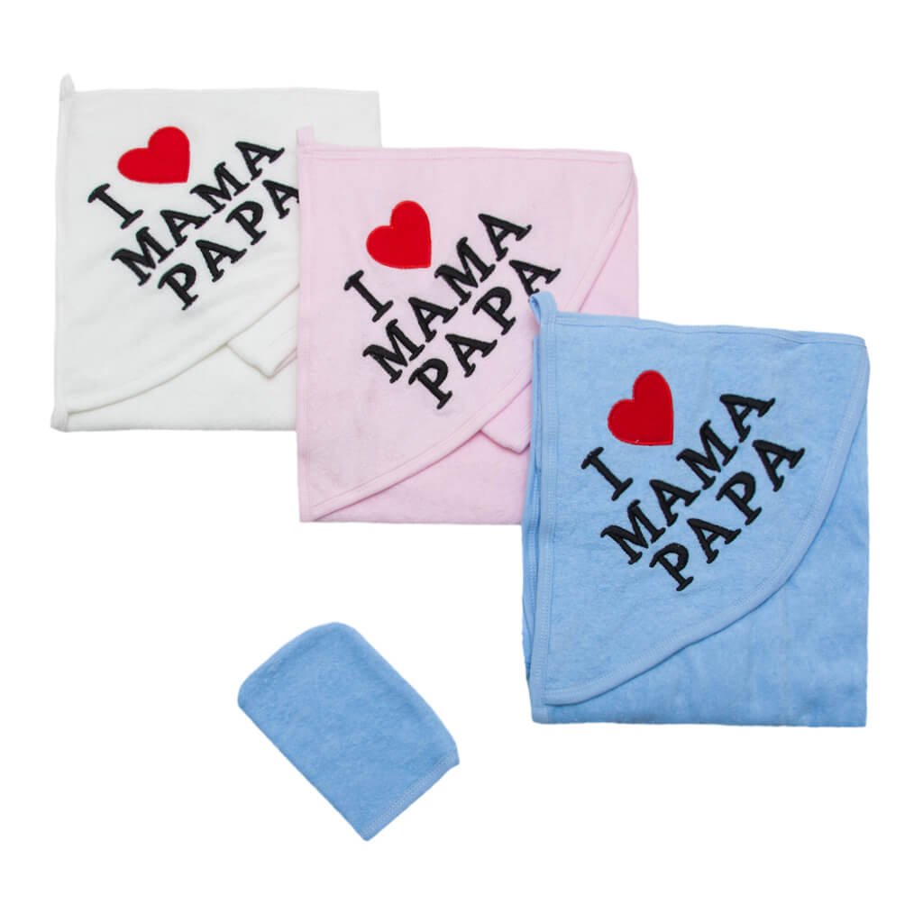Рушник дитячий махра 11032 I love mama papa розмір 80*90 см