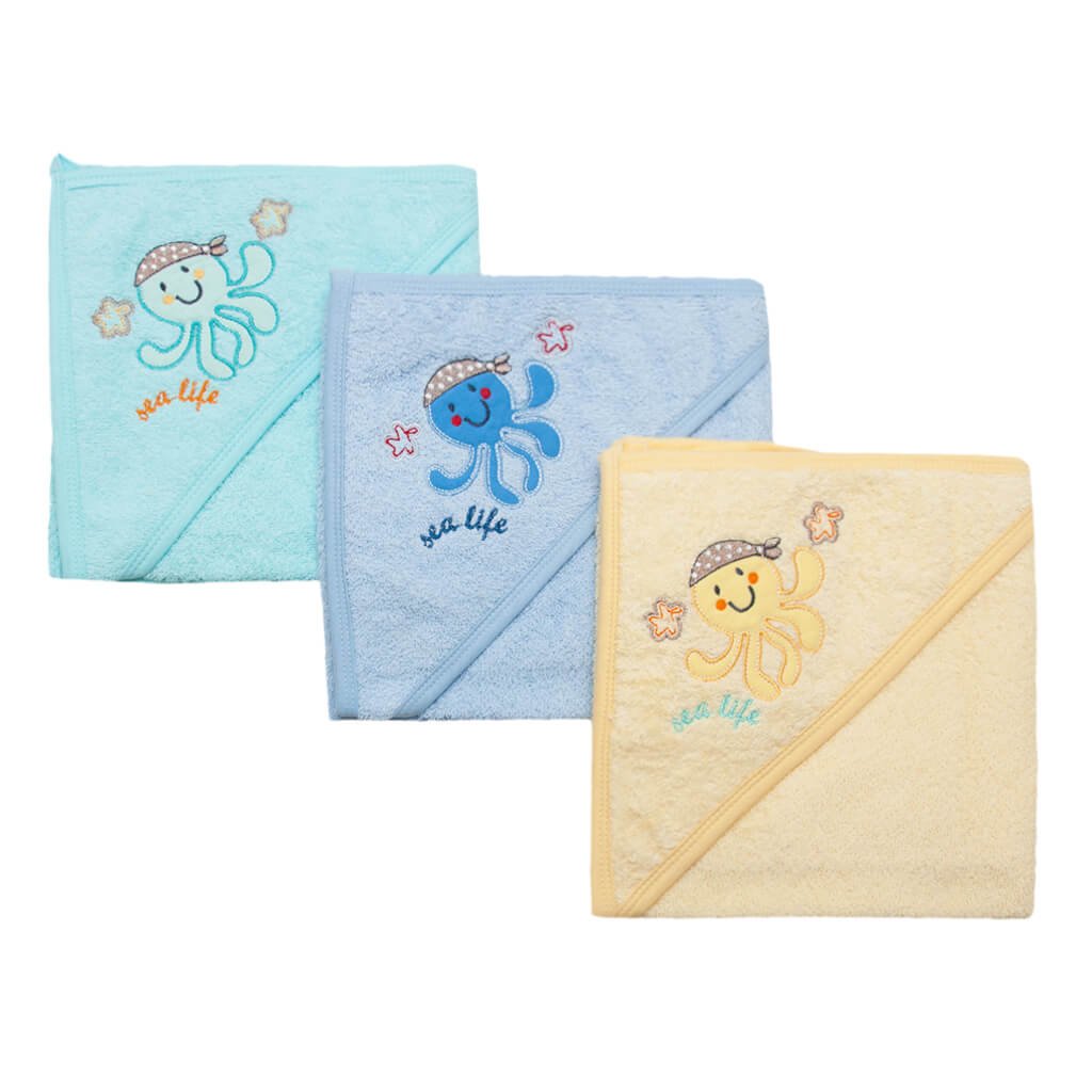 Дитячий рушник з махрової тканини з капюшоном стане незамінним помічником після купання. М'який і натуральний матеріал зі 100% бавовни ніжно піклується про шкіру дитини, швидко поглинаючи вологу і зберігаючи тепло. Рушник доповнено зручним капюшоном, який дає змогу надійно вкрити голову малюка, запобігаючи переохолодженню. На капюшоні розташована невелика нашивка. Рушник м'ятного кольору ідеально підходить для щоденного використання вдома. Завдяки високій якості махрової тканини, він зберігає свою м'якість і яскравість навіть після частих прань