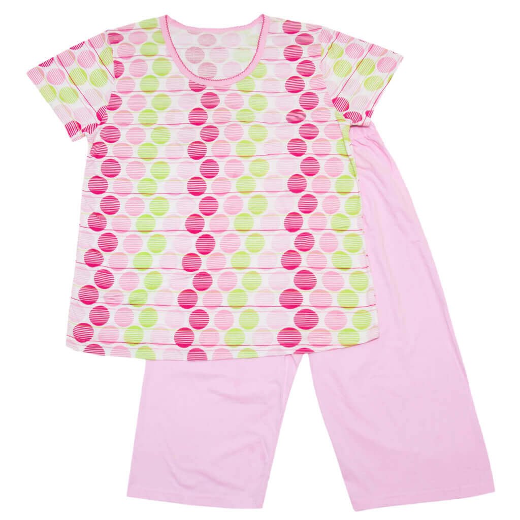 Наш інтернет-магазин ТМ Арлекин поповнив свій асортимент жіночого одягу кількома піжамними комплектами. Піжама - одяг, який призначений для сну, тому має бути зручним і приємним. Представлена модель пошита з якісного та натурального полотна – куліра. У комплект входить футболочка вільного крою та рожеві штанці. Футболка виготовлена із полотна з різними візерунками, а штани із однотонної тканини. Такий піжамний комплект гарантує Вам максимальний комфорт та затишок. Швидше оформляйте замовлення на нашому сайті! Приємних покупок.