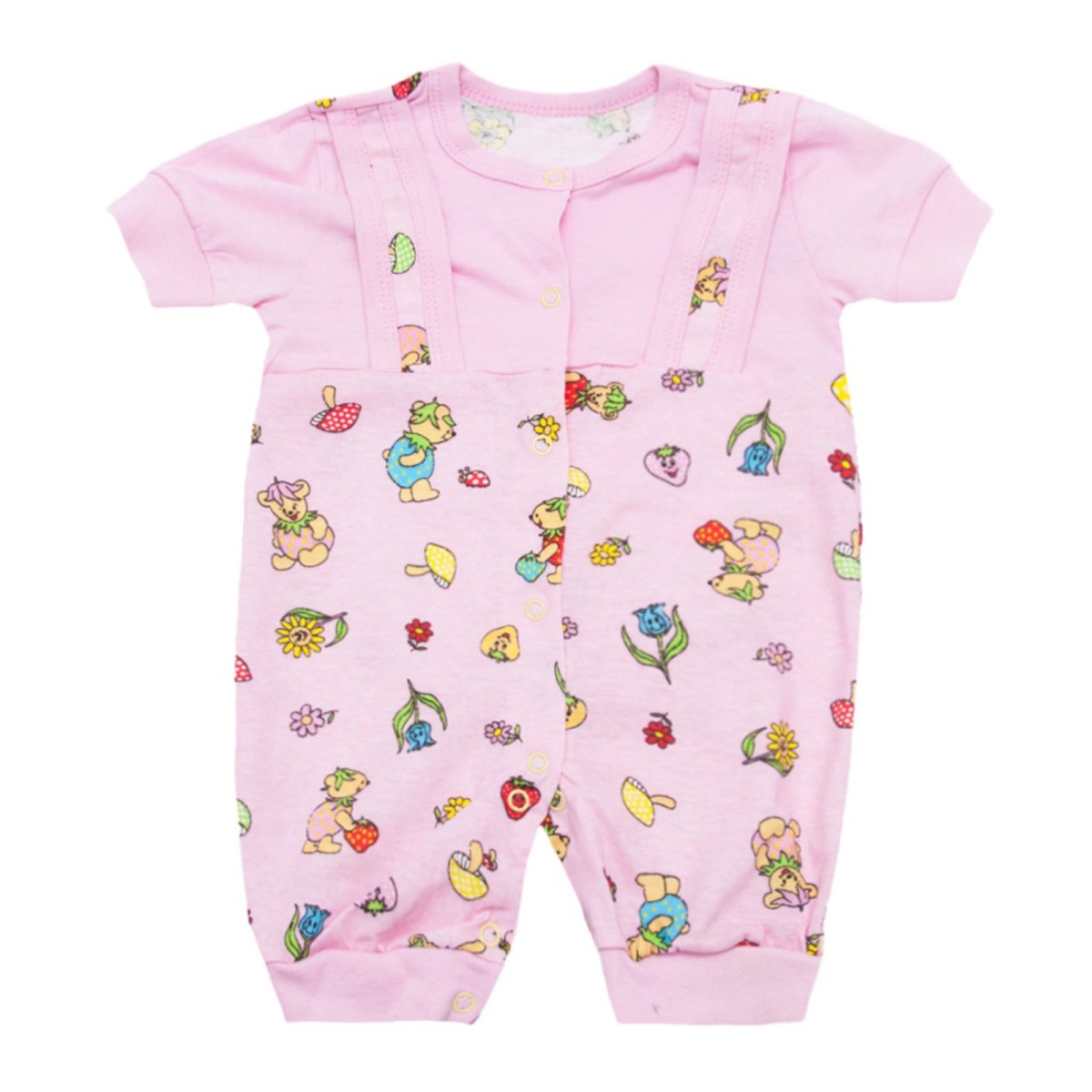 Легкий, як літній вітерець, цей пісочник створений для активних і допитливих малюків. Ніжне кулірне полотно рожевого кольору комфортно відчувається на шкірі і забезпечує вільну циркуляцію повітря навіть у теплу погоду. Зручний, просторий крій не обмежує активність малюка і дозволяє йому вільно рухатися, досліджуючи навколишній світ. Зручні кнопочки, розташовані спереду, забезпечують легке переодягання та економлять час батьків. Яскравий принт з веселими малюнками відмінно виглядає як на прогулянці, так і вдома. Ідеальний вибір для повсякденного комфорту малюка.