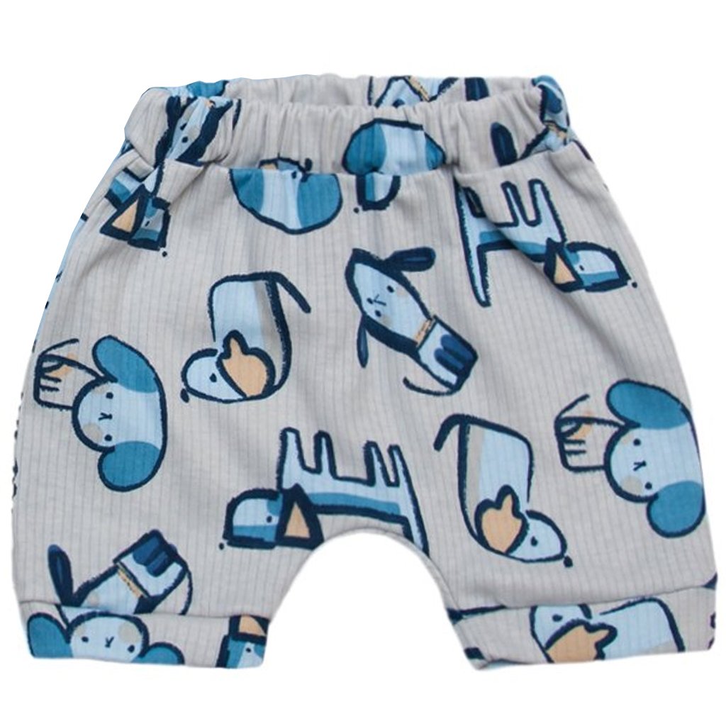 Представлена модель дитячих шортиків пошита з високоякісного бавовняного полотна - інтерлок рапорт сірого кольору. Такі шорти стануть ідеальним варіантом для теплої пори року, адже тканина досить легка та має високу повітропроникність, що дуже важливо в спекотну пору. На поясі виробу присутня еластична резинка, яка відмінно зафіксує шортики на малюку. Полотно прикрашене стильними малюнками та візерунками у вигляді собачок, які точно піднімуть настрій Вашому карапузові. Такі трикотажні шорти можна з легкістю поєднувати з різними футболками і майками.
